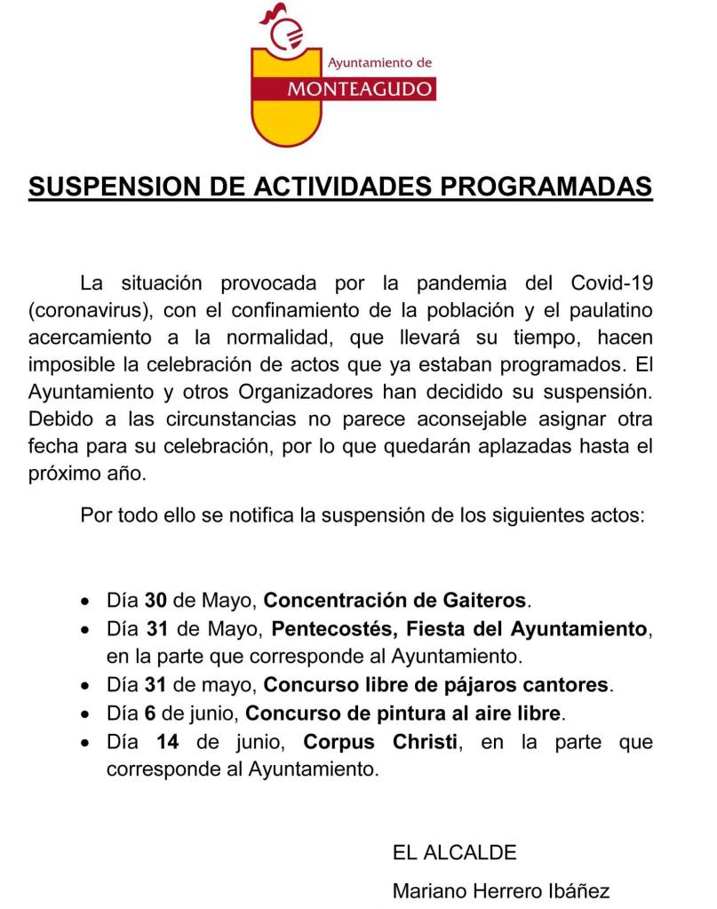 La triste situación provocada por el coronavirus ha obligado a suspender las actividades programadas por el Ayuntamiento de Monteagudo, y entre ellas el Concurso de Pintura al Aire Libre que estaba previsto para el día 6 de Junio. ¡Esperamos volver con más fuerza en 2021!